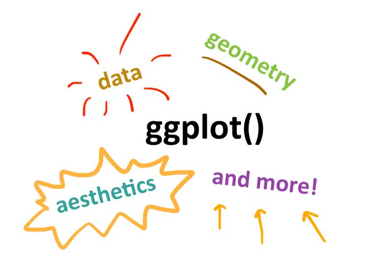 The “gg” part of “ggplot2” stands for the grammar of graphics. Just like sentences are composed of various parts of speech (e.g., nouns, verbs, adjectives) that are arranged using a grammatical structure, ggplot2 allows us to create figures using a standardized syntax.