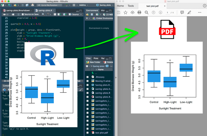 It’s super rewarding when you finally figure out how to plot and visualize your data. But to show off your plot to the rest of the world, you need to first be able to save and export it from your R Studio workspace.